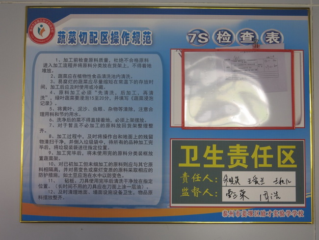校領(lǐng)導(dǎo)十分重視食堂管理工作,專門成立了由總務(wù)主任、工會代表、教師代表、食堂會計、營養(yǎng)師組成的伙食管理委員會,由校長擔(dān)任組長,進(jìn)行食堂的日常管理工作。為了進(jìn)一步管理好食堂,學(xué)校還制定了各種制度,堅決以制度管人管事,如:江蘇省中小學(xué)陽光食堂監(jiān)管平臺使用制度、勵才實(shí)驗(yàn)學(xué)校7s管理制度、伙食會主任每日巡查制度、后勤人員請假制度、視頻招標(biāo)制度、物品驗(yàn)收制度、各種功能間制度、廚師嘗菜評價制度、服務(wù)員餐前吃飯評價制度、倉庫保管制度等。