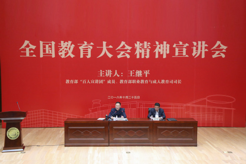 王繼平從充分認(rèn)識(shí)全國(guó)教育大會(huì)的重大意義,深入學(xué)習(xí)、領(lǐng)會(huì)習(xí)近平總書(shū)記關(guān)于教育的重要論述,扎實(shí)推進(jìn)教育大會(huì)確定的加快現(xiàn)代化重點(diǎn)任務(wù),譜寫(xiě)新時(shí)代職業(yè)教育新篇章等四個(gè)方面,全面、系統(tǒng)、深入地解讀了全國(guó)教育大會(huì)精神。他強(qiáng)調(diào),深入學(xué)習(xí)貫徹習(xí)近平總書(shū)記重要講話和全國(guó)教育大會(huì)精神是當(dāng)前和今后一段時(shí)間各級(jí)各部門(mén)的重要政治任務(wù),是全國(guó)教育系統(tǒng)的頭等大事。