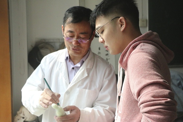 此次活動邀請國家一級高級技師,中國玉石雕刻“玉星獎”獲得者,玉雕大師王延兵指導(dǎo)教授學(xué)生玉雕造型技能,王老師親自演示在玉石原料上的起稿與玉雕設(shè)計,并且悉心的對每一名學(xué)生的實踐操作進(jìn)行指導(dǎo),王老師不僅工藝技能高超,還具備深厚的文化底蘊,授業(yè)同時,也一直致力于傳統(tǒng)玉雕文化的宣揚和培養(yǎng)。王老師生長在玉鄉(xiāng)岫巖,對玉情有獨鐘,他認(rèn)為玉的需要一種傳統(tǒng)的表達(dá)形式。對于藝術(shù)創(chuàng)作的靈感,王老師直言他的靈感來源于自然,大自然是最好的老師,要貼切自然貼切生活,從生活中尋找靈感。王老師將這些不遺余力的傳授給學(xué)生,超群的學(xué)識與技藝,精益求精的工匠精神,深深令寶石專業(yè)學(xué)生折服,跟隨大師的腳步,學(xué)生紛紛做起了“小手藝人”,這正是匠人精神的傳承與新的探索。