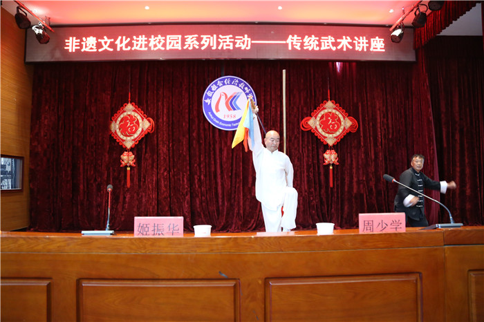 5月8日下午,安徽科技貿(mào)易學(xué)校邀請(qǐng)蚌埠武術(shù)協(xié)會(huì)副主席、趙堡太極拳專業(yè)委員會(huì)會(huì)長、優(yōu)秀傳承人姬振華等給師生們做了一場(chǎng)別開生面的傳統(tǒng)武術(shù)講座。
