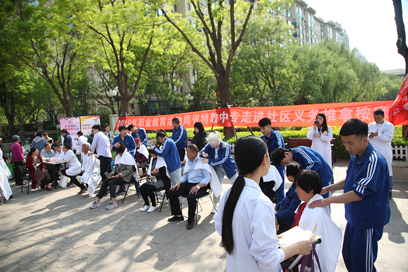 迎祖國(guó)七十華誕,展職教時(shí)代風(fēng)采。在2019年全國(guó)職業(yè)教育活動(dòng)周啟動(dòng)之際,山西省特殊教育中等專業(yè)學(xué)校開展了進(jìn)社區(qū)義務(wù)推拿按摩活動(dòng)。