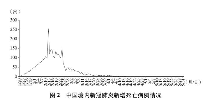 截至2020年5月31日24時,31個省、自治區(qū)、直轄市和新疆生產(chǎn)建設兵團累計報告確診病例83017例,累計治愈出院病例78307例,累計死亡病例4634例,治愈率94.3%,病亡率5.6%(見圖1、2、3、4)?;仡櫱耙浑A段中國抗疫歷程,大體分為五個階段。