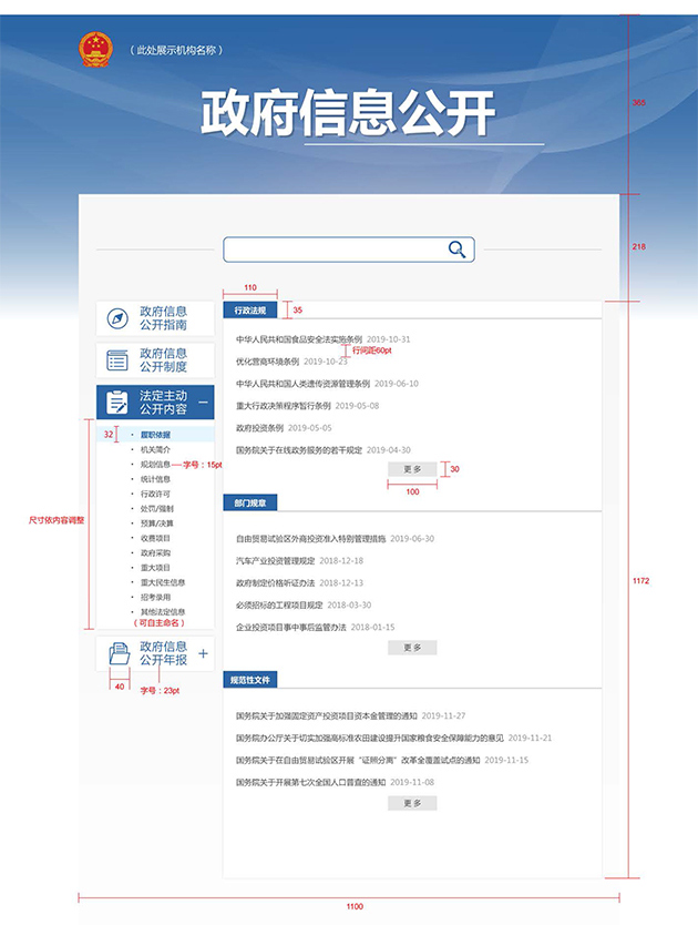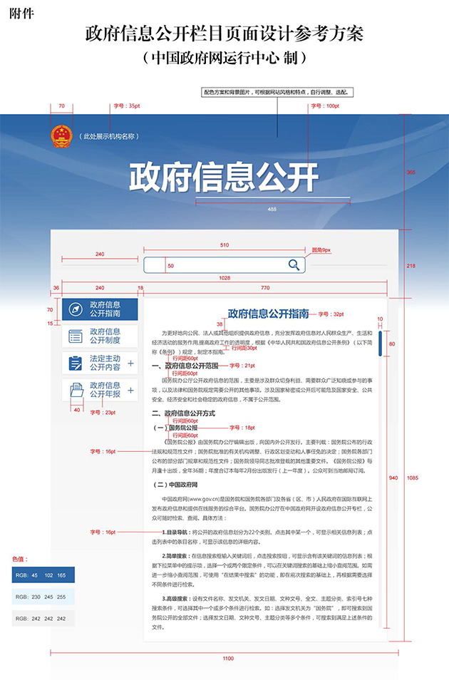 中國政府網(wǎng)運(yùn)行中心根據(jù)上述要求設(shè)計(jì)了“政府信息公開欄目頁面設(shè)計(jì)參考方案”,供參考使用。