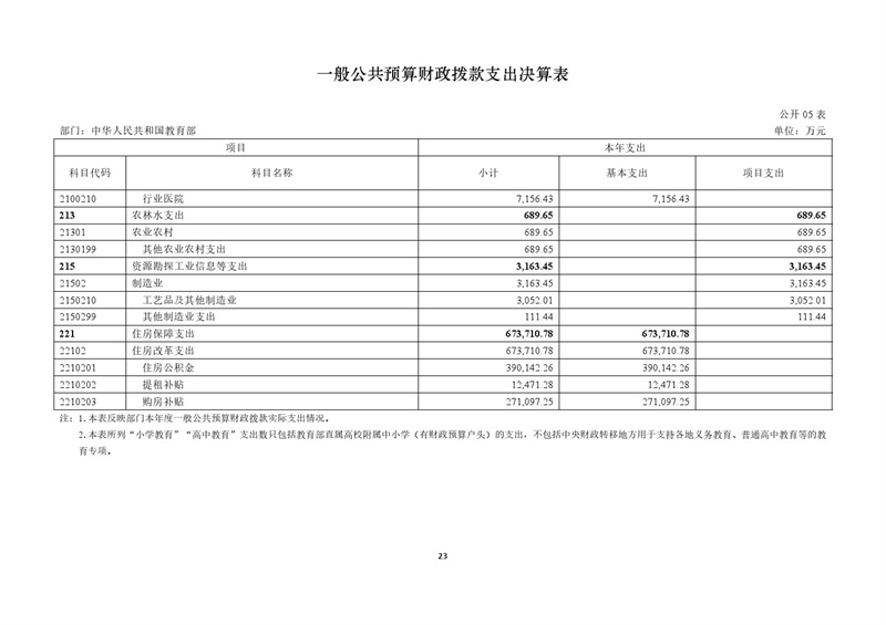 教育部2023年度部門(mén)決算