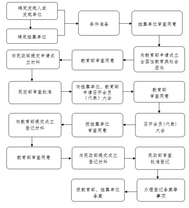 注:新成立全國(guó)性教育類社會(huì)團(tuán)體完成登記手續(xù)后,需在30日內(nèi)將社會(huì)團(tuán)體組織機(jī)構(gòu)代碼證書(shū)、社團(tuán)法人登記證書(shū)、稅務(wù)登記證書(shū)、印章式樣、銀行開(kāi)戶證明復(fù)印件、辦事機(jī)構(gòu)設(shè)置、《教育部主管社會(huì)組織信息統(tǒng)計(jì)表》及電子版等相關(guān)材料報(bào)掛靠單位、教育部備案。與申請(qǐng)成立過(guò)程所提交材料重復(fù)的,可不再提交。
