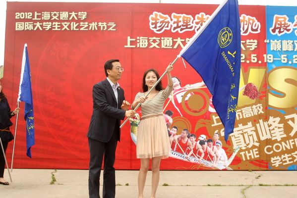 5月15日下午,上海交大在閔行校區(qū)菁菁廣場(chǎng)召開交大、復(fù)旦學(xué)生文體競(jìng)賽動(dòng)員大會(huì)。校長(zhǎng)張杰、校黨委副書記徐飛到場(chǎng)為6支參賽隊(duì)伍授旗。