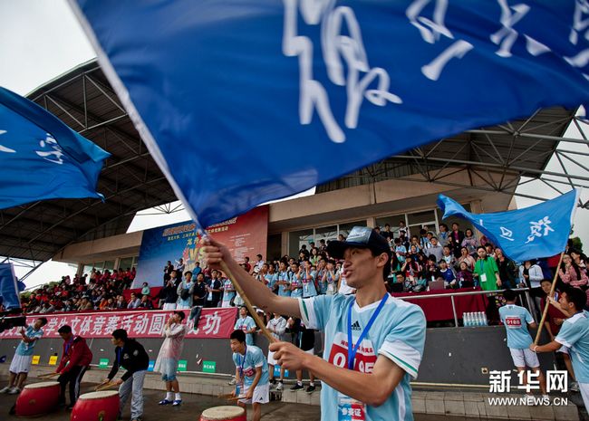 5月20日,在上海市青少年校外活動營地東方綠舟,復(fù)旦大學(xué)學(xué)生們?yōu)樽约簩W(xué)校的參賽選手加油。(新華社記者 金立旺 攝)