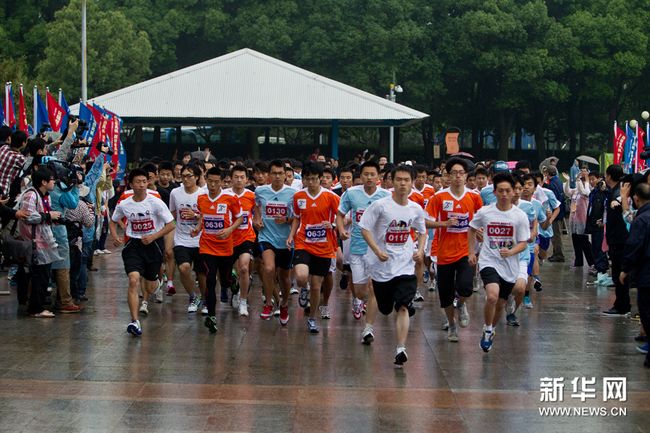 5月20日,在上海市青少年校外活動營地東方綠舟,復(fù)旦大學(xué)和上海交通大學(xué)的學(xué)生們在進(jìn)行小馬拉松比賽。(新華社記者 金立旺 攝)