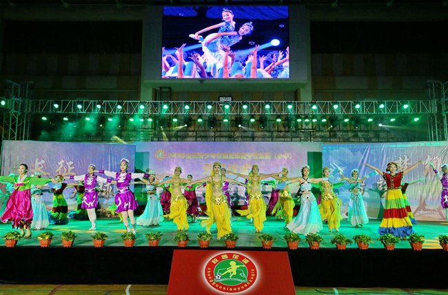 8月8日,秦皇島市第三中學(xué)舞蹈隊(duì)在開營儀式上表演舞蹈《響亮節(jié)拍》。當(dāng)日,2016年全國青少年校園足球夏令營總營(小學(xué))在國家體育總局秦皇島訓(xùn)練基地(中國足球?qū)W校)開營。該夏令營由全國青少年校園足球工作領(lǐng)導(dǎo)小組辦公室主辦,河北省教育廳、秦皇島市人民政府承辦。活動為期10天,將有全國31個省區(qū)市和新疆生產(chǎn)建設(shè)兵團(tuán)的448名少年足球運(yùn)動員入營參加訓(xùn)練和比賽。新華社記者楊世堯攝