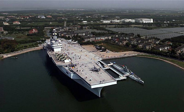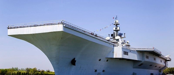 “東方綠舟”航空母艦是美國(guó)海軍“尼米茲”級(jí)航空母艦的仿真水泥模型,與原型同樣大小,并擁有與原型航母完全相同的跑道和駕駛臺(tái)。
