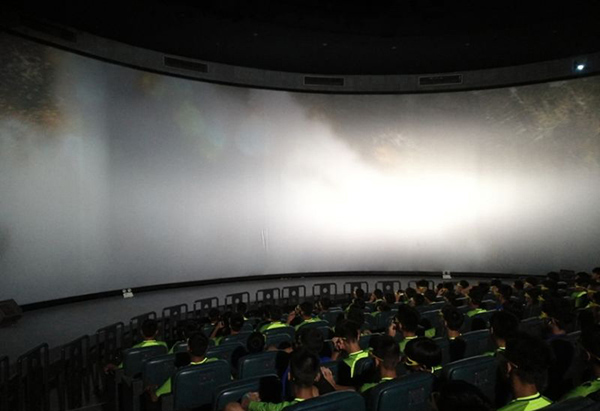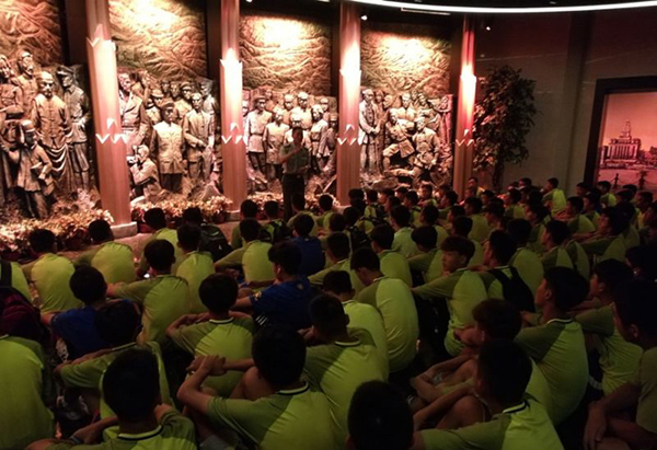 接下來,解說官兵帶領(lǐng)大家來到了國(guó)防教育廳,這里是一個(gè)莊嚴(yán)的區(qū)域,主要通過大型屏幕和實(shí)物史料等向青少年進(jìn)行軍事和國(guó)防安全教育。解說官兵在正式進(jìn)入之前為大家播放了一段新中國(guó)成長(zhǎng)的艱辛與光輝歷程,并對(duì)參觀的注意事項(xiàng)進(jìn)行了講解。