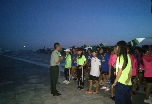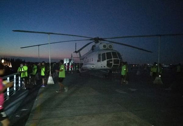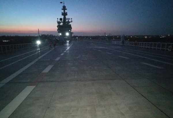 最后,同學(xué)們登上了航母甲板,此時(shí)天色已晚,但同學(xué)們的興奮之情依然很高,他們?cè)趯掗煹募装迳蠚g呼雀躍、奔跑和拍照留念。