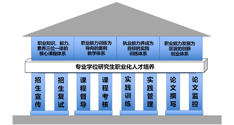 圖1 專業(yè)學(xué)位研究生職業(yè)化人才培養(yǎng)的四梁八柱圖